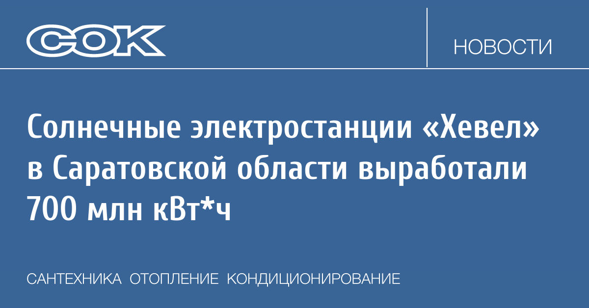 Важное событие в сфере «зелёной» энергетики региона: за весь период эксплуатации солнечные электростанции группы компаний «Хевел» в Саратовской области выработали свыше 700 млн кВт*ч электроэнергии.