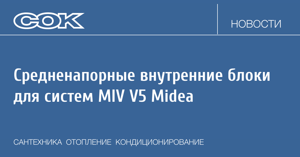 Компания Daichi – эксклюзивный дистрибьютор климатического оборудования Midea на российском рынке представила средненапорные внутренние блоки канального типа MVM для центральных многозональных систем кондиционирования MIV V5.