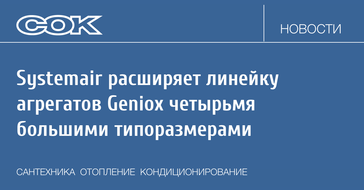 Компания Systemair расширяет свою линейку высокоэнергоэффективных воздухообрабатывающих агрегатов серии Geniox последнего поколения четырьмя новыми типоразмерами, предназначенными для проектов с большими расходам воздуха — до 110000 м³/ч.