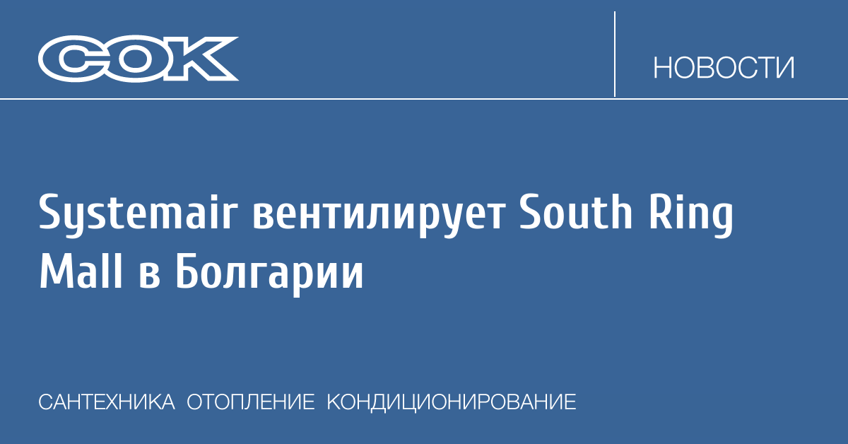 Компания Systemair заключила контракт на поставку вентиляционного оборудования для торгово-развлекательного комплекса South Ring Mall в Болгарии.