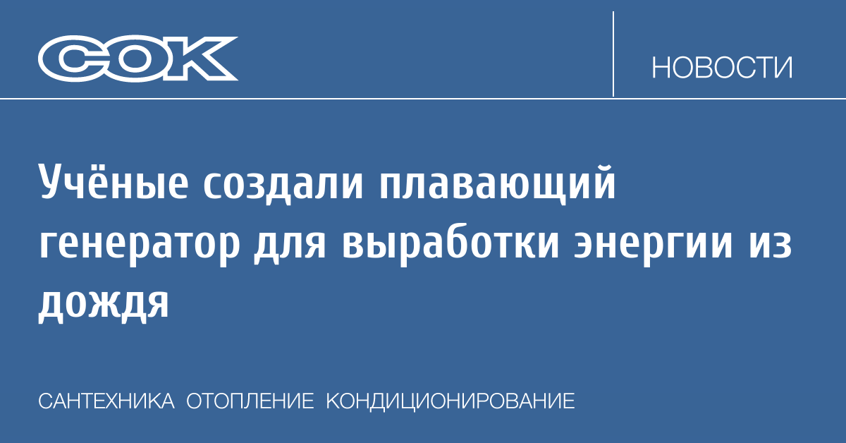 Учёные разработали плавающее устройство, которое вырабатывает электричество из дождевых капель, используя воду одновременно как конструкционный элемент и как электрод. Новый водоинтегрированный генератор демонстрирует высокий выход энергии и работает непосредственно на поверхности воды. Исследование проведено в Нанкинском университете аэронавтики и астронавтики и опубликовано в журнале National Science Review, сообщает SciTechDaily.