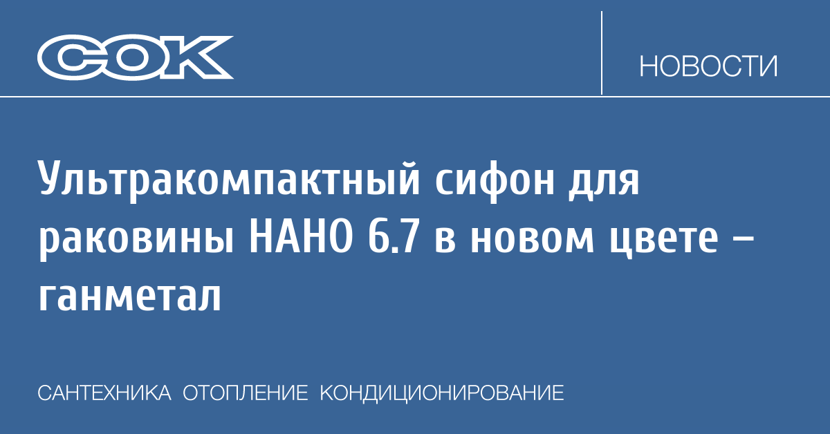 Компания Виркэн работает в России уже 20 лет, производит сифоны во Владимирской области, а также поставляет продукцию из Франции. В феврале 2026 года компания Виркэн выпустила новую серию сифонов для раковины. Высота НАНО всего 6,7 см. Всё дело в сухом затворе — умной мембране внутри сифона, защищающей от запахов и шума из труб. НАНО 6.7 — сифон с верхней прочисткой, клапан клик-клак легко снимается одним движением руки. Больше никаких заторов и никаких химикатов.