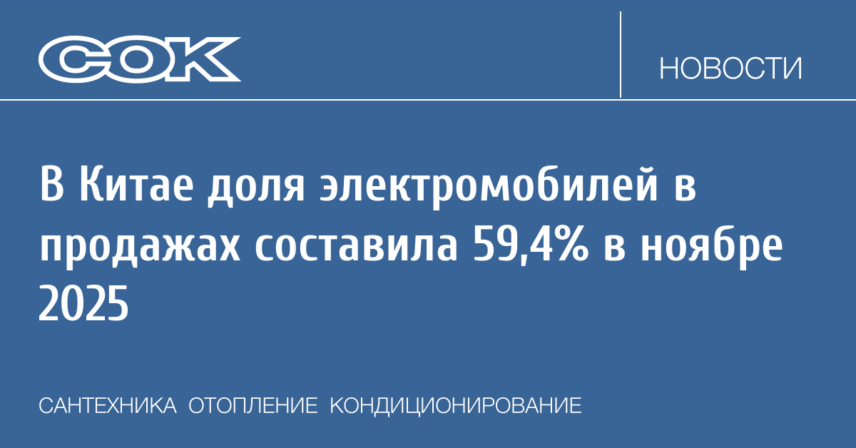 Таким образом, доля электромобилей в розничных продажах в ноябре составила 59,4%, увеличившись на 7 процентных пунктов по сравнению с аналогичным периодом прошлого года.