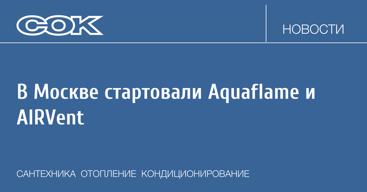 Aquaflame — крупнейшая в России международная выставка комплексных инженерных решений для отопления, водоснабжения, канализации и бассейнов с более чем тридцатилетней историей. Мероприятие проходит одновременно с AIRVent — ключевой международной выставкой бытового, промышленного и полупромышленного оборудования, технологий и услуг для вентиляции, кондиционирования и холодоснабжения.