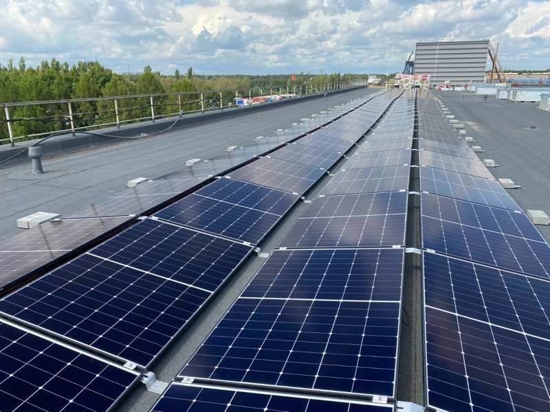Солнечная электростанция была смонтирована всего за шесть дней и оборудована 288 высокоэффективными фотоэлектрическими модулями LONGI мощностью 435 Вт, системой крепления Aerocompact для плоской кровли, а также двумя сетевыми инверторами Fronius.