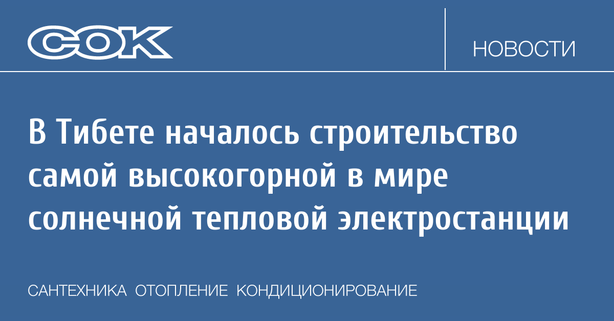 В уезде Дамшунг городского округа Лхаса Тибетского автономного района КНР началось строительство солнечной тепловой электростанции с параболическими концентраторами мощностью 50 МВт.