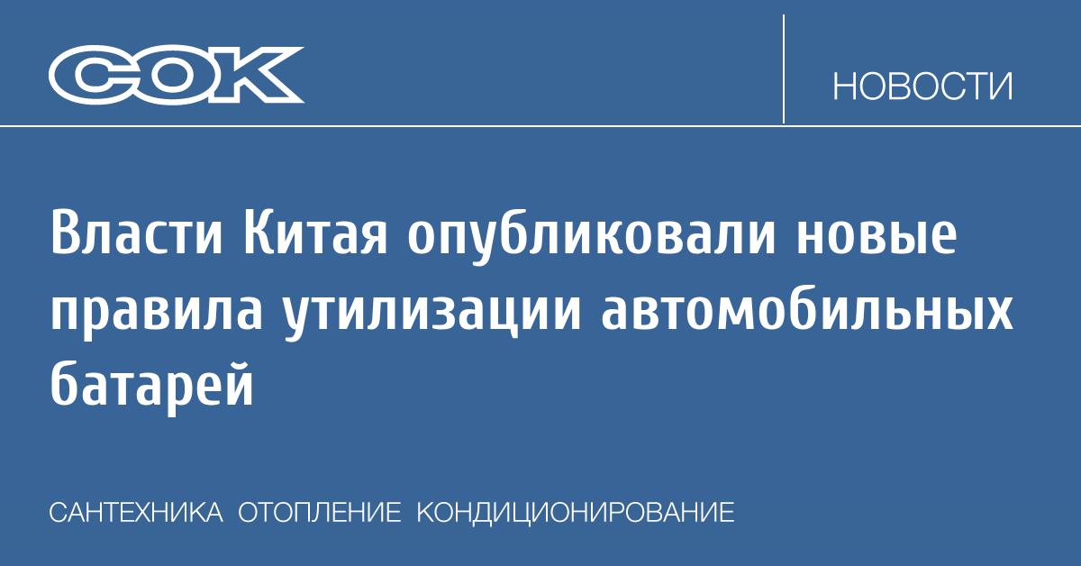 Министерство промышленности и информационных технологий, Национальная комиссия по развитию и реформам, Министерство экологии и окружающей среды, Министерство транспорта, Министерство торговли и Государственное управление по регулированию рынка Китая совместно выпустили «Временные меры по организации переработки и комплексного использования отработанных аккумуляторных батарей от электромобилей».