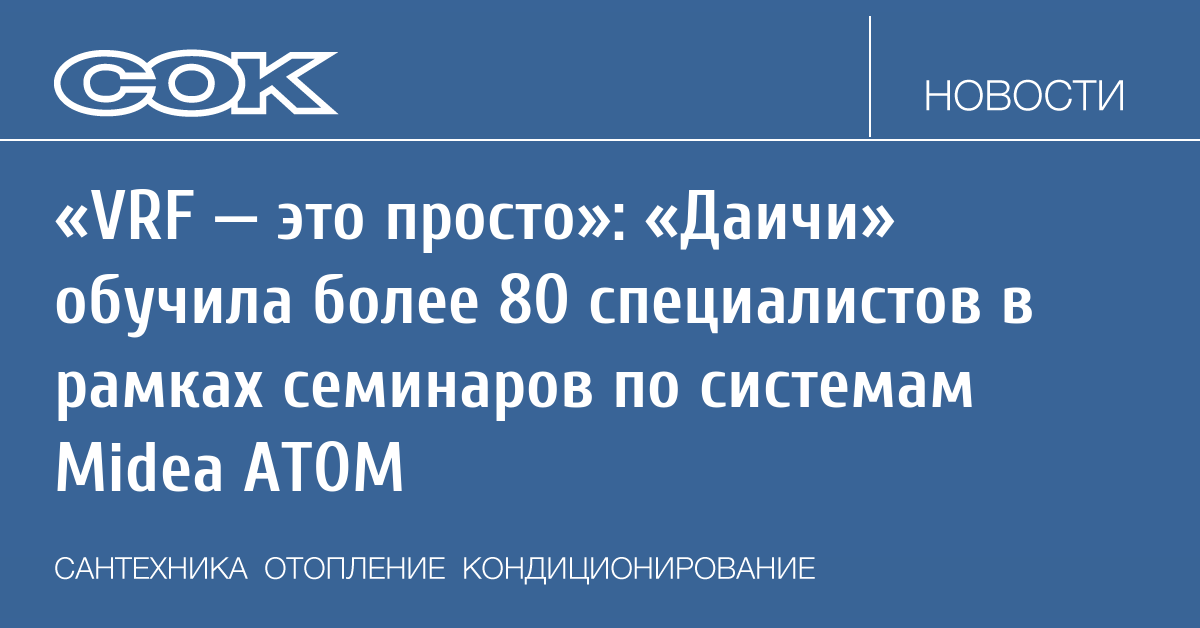 Компания «Даичи», ведущий дистрибьютор климатической техники в России, успешно провела серию обучающих семинаров для партнеров «VRF — это просто». Мероприятия были посвящены углубленному изучению мини-VRF систем Midea серии ATOM — одного из самых востребованных решений на рынке.