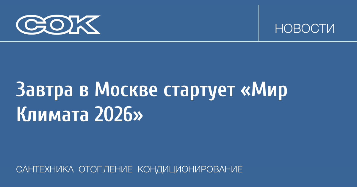 С 16 по 19 февраля в УВК «Тимирязев Центр» пройдёт 21-я Международная выставка оборудования для систем кондиционирования, вентиляции, отопления и холодоснабжения «Мир Климата 2026». Оформить бесплатный билет можно на официальном сайте выставки.