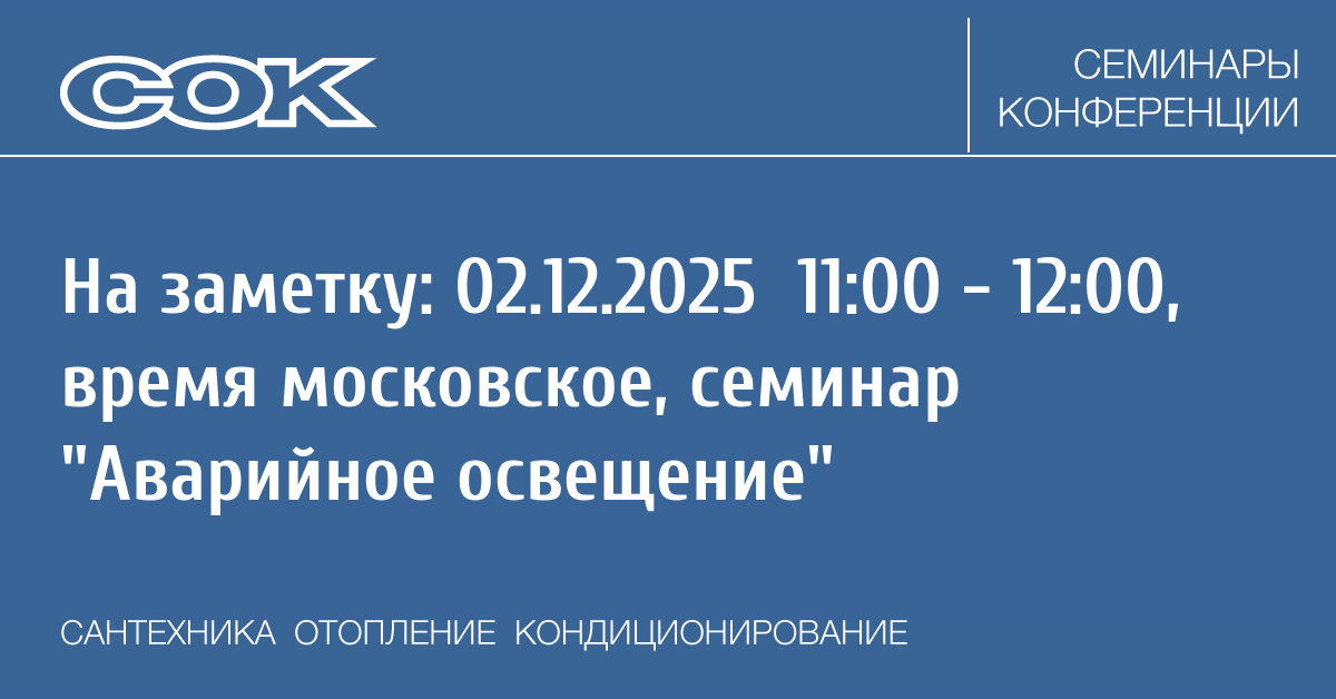 - 02.12.2025 11:00 - 12:00 Webinar Аварийное освещение