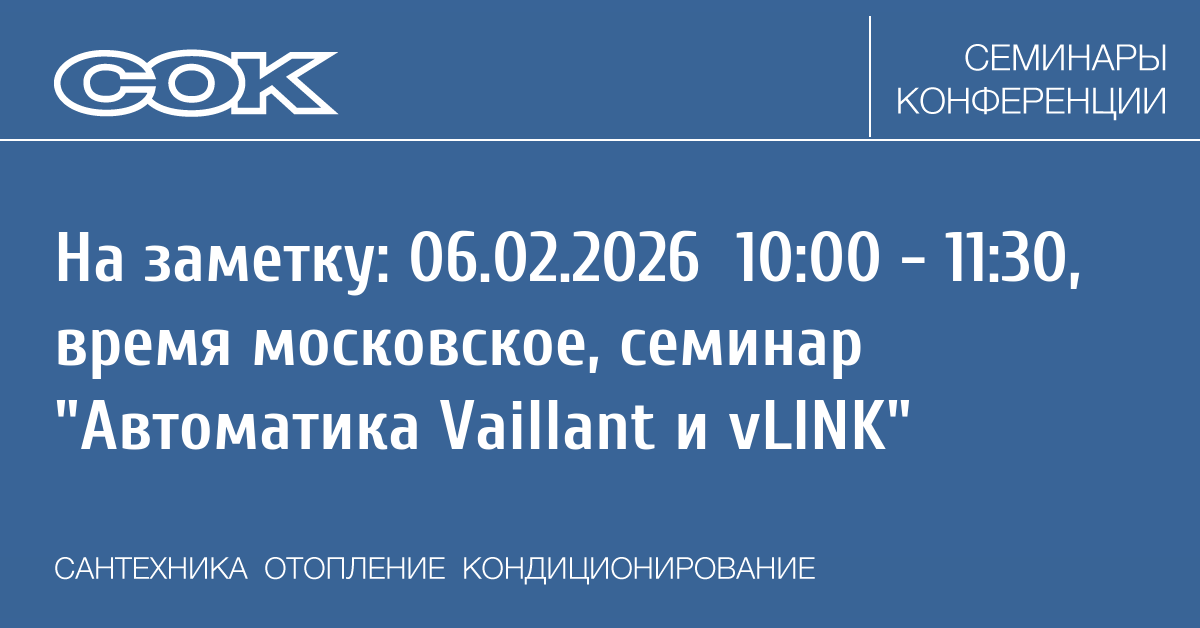 - 06.02.2026 10:00 - 11:30 Вебинар Автоматика Vaillant и vLINK