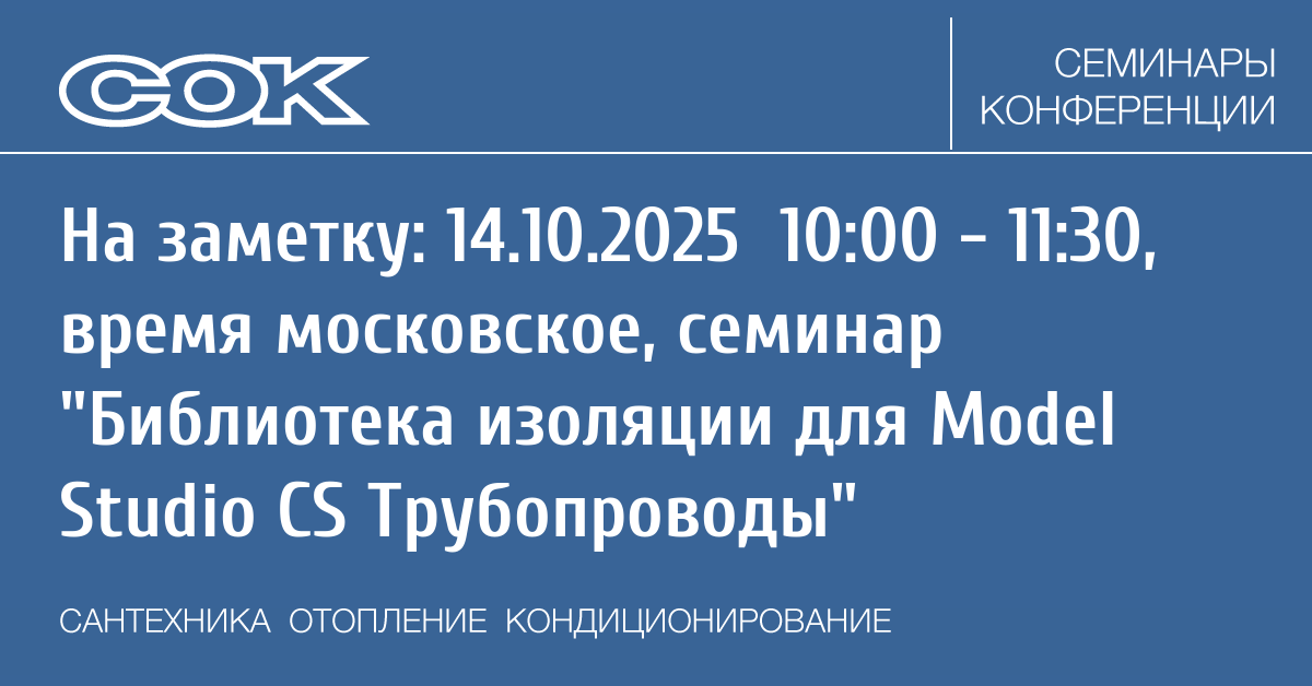 - 14.10.2025 10:00 - 11:30 Webinar Библиотека изоляции для Model Studio CS Трубопроводы
