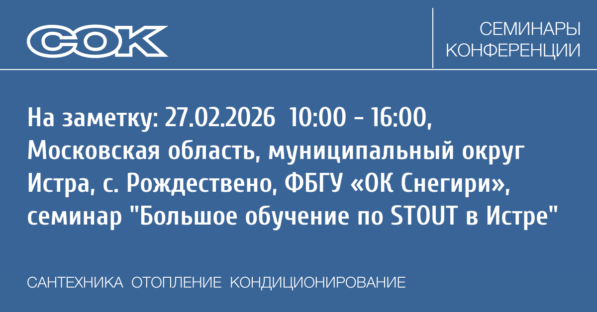 - 27.02.2026 10:00 - 16:00 Семинар Большое обучение по STOUT в Истре
