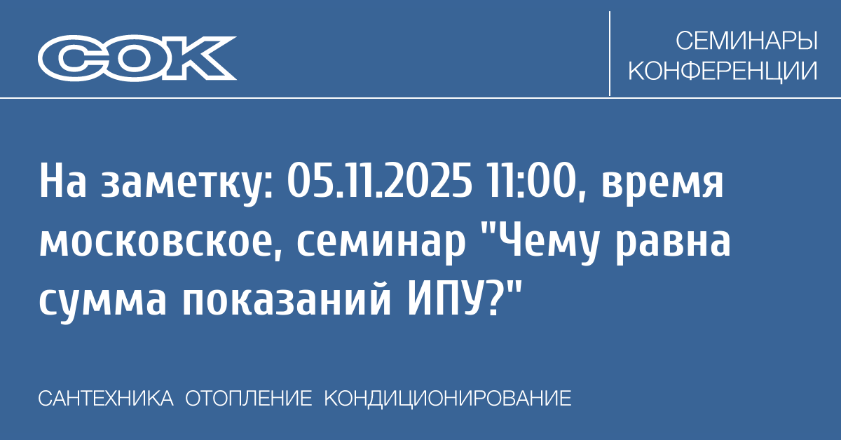 - 05.11.2025 11:00 - 12:30 Webinar Чему равна сумма показаний ИПУ?