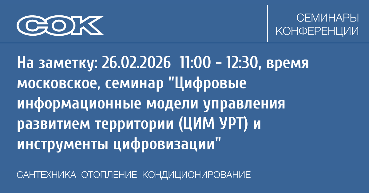 - 12.02.2026 09:30 - 18:00 Семинар г. Новосибирск - Инженерно-технические решения в области холодоснабжения и кондиционирования, обзор текущих тенденций в развитии холодильных компонентов