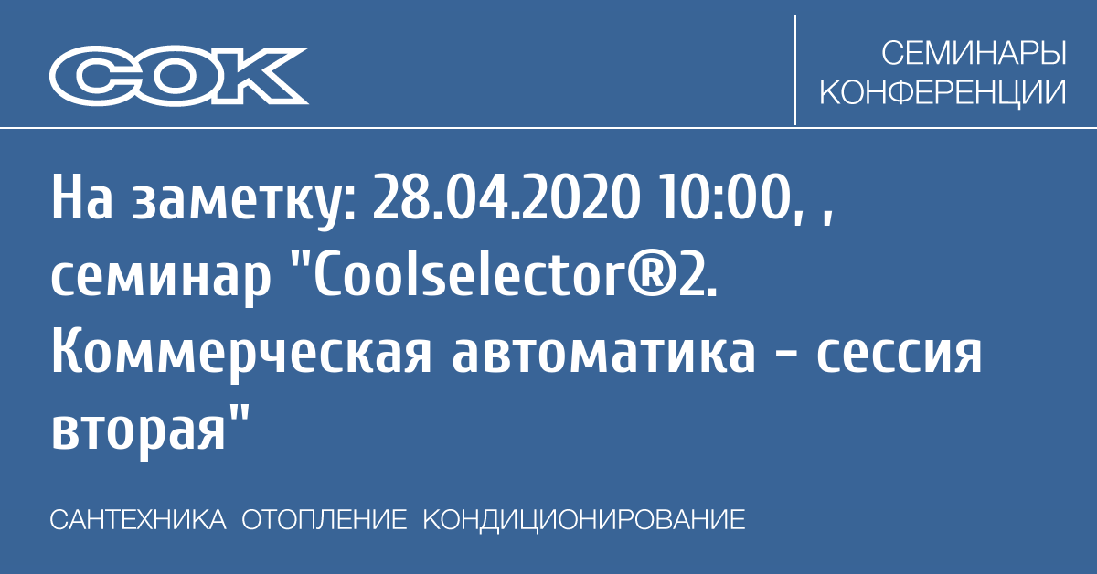 Webinar: Coolselector®2. Коммерческая автоматика - сессия вторая