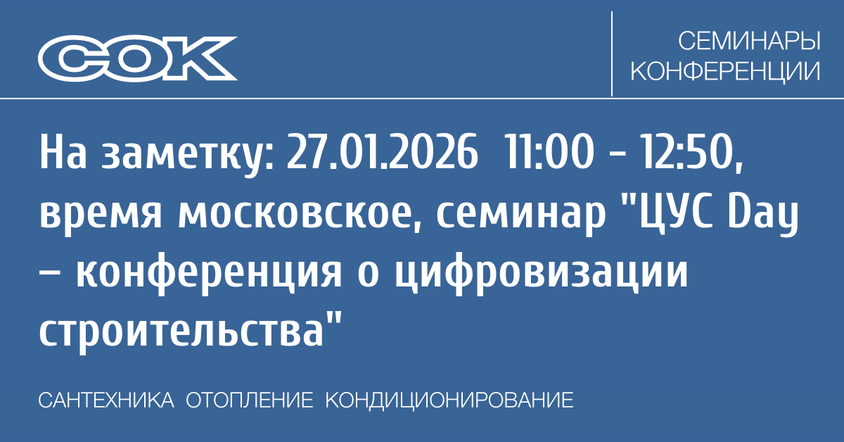 27 января состоится ЦУС Day — бесплатная онлайн-конференция, посвященная цифровизации в строительстве. Организатор — ООО «ОСМОКОД» (входит в Группу ПОЛИПЛАСТИК).