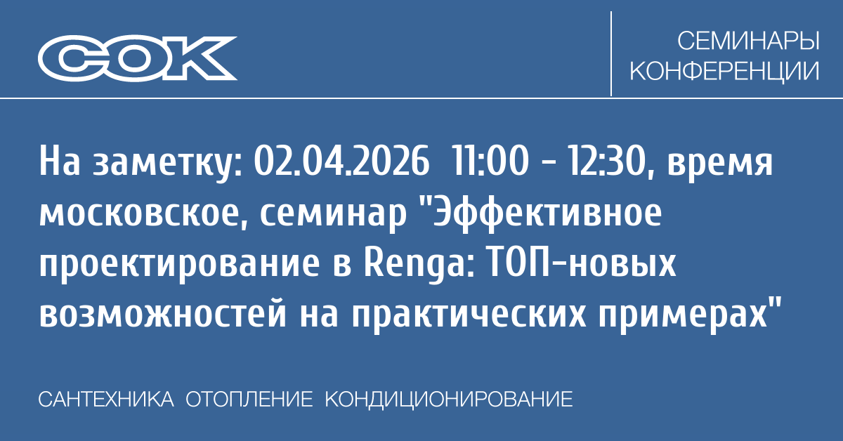 - 25.03.2026 09:30 - 18:00 Семинар г. Владивосток - Инженерно-технические решения в области холодоснабжения и кондиционирования, обзор текущих тенденций в развитии холодильных компонентов