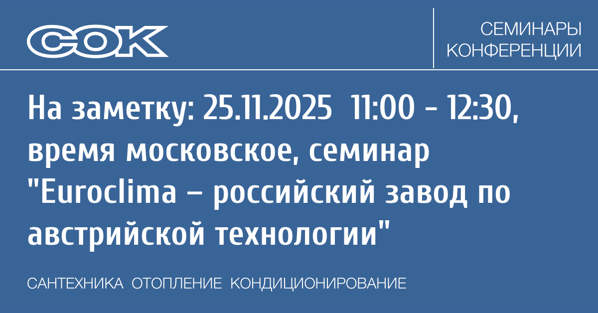 - 17.11.2025 11:00 - 12:00 Seminar ROYAL CLIMA. Тепловое оборудование. Обзор ассортимента.