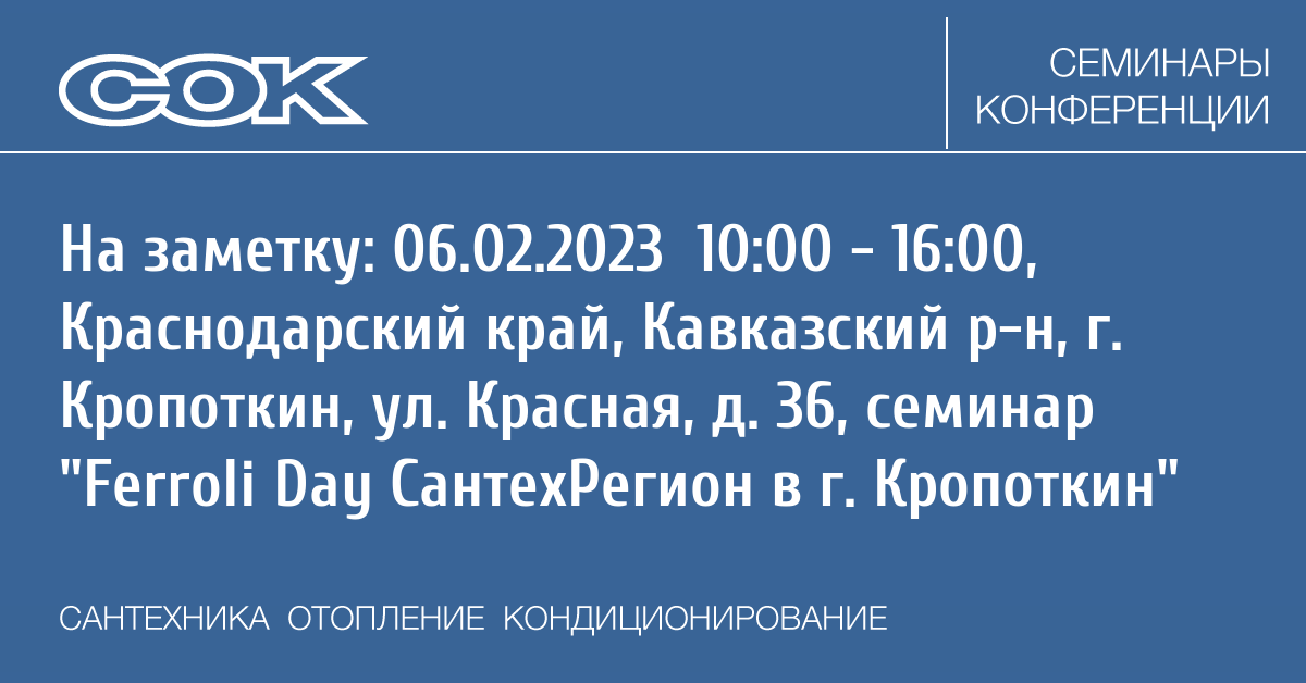 Семинар: Ferroli Day СантехРегион в г. Кропоткин
