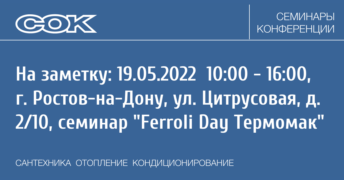 Компания Ferroli приглашает монтажников на завтрак с Ferroli совместно с Термомак.