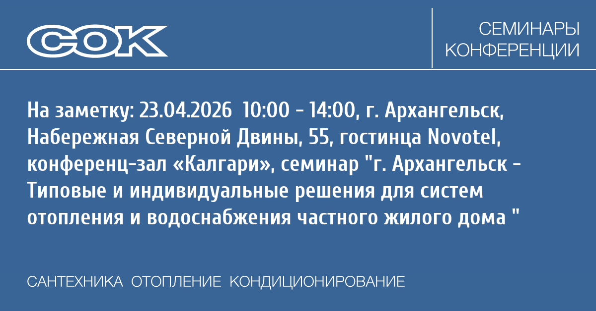 Семинар: г. Архангельск - Типовые и индивидуальные решения для систем отопления и водоснабжения частного жилого дома