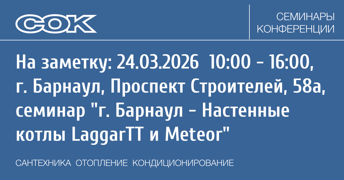 Семинар: г. Барнаул - Настенные котлы LaggarTT и Meteor
