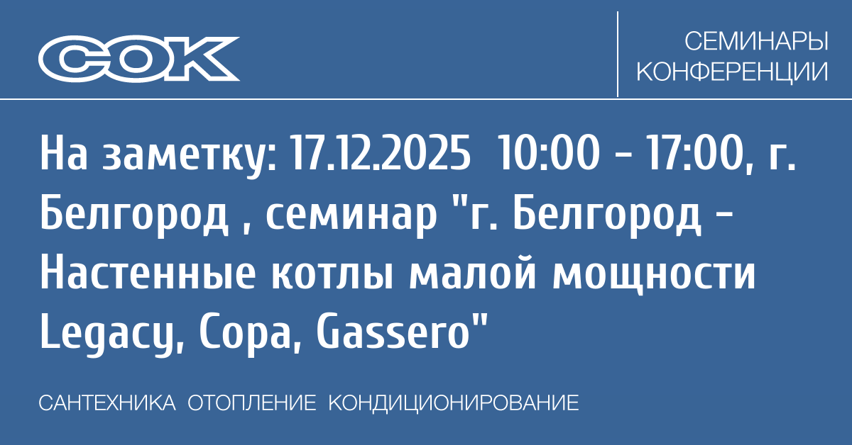 Семинар: г. Белгород - Настенные котлы малой мощности Legacy, Copa, Gassero
