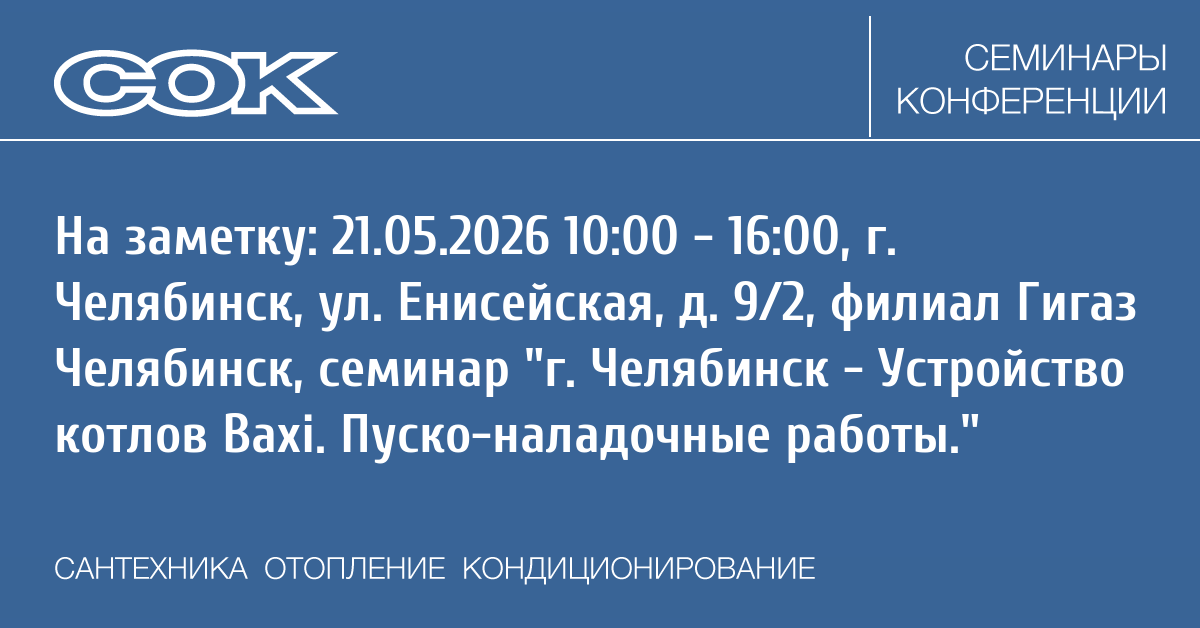 Городской семинар BAXI в Челябинске в филиале Гигаз Челябинск для монтажных и сервисных компаний на тему:
