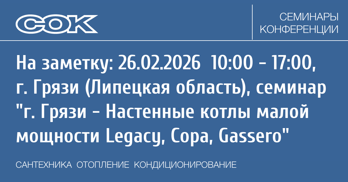 Семинар: г. Грязи - Настенные котлы малой мощности Legacy, Copa, Gassero