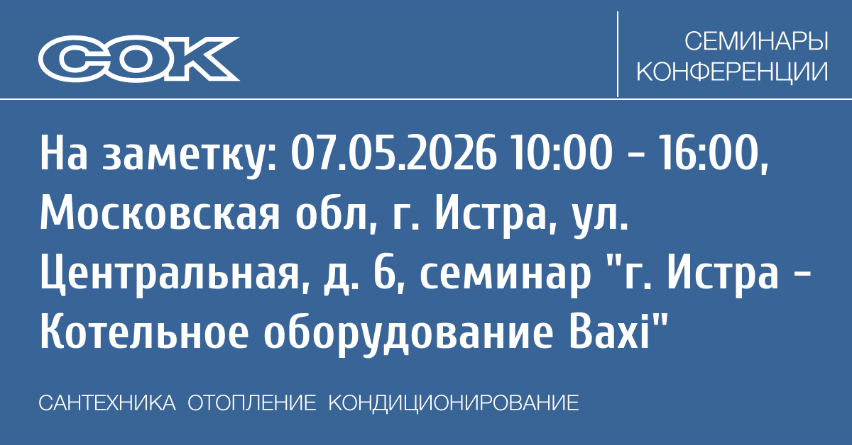 Городской технический семинар BAXI в Истре для монтажных и сервисных компаний на тему: