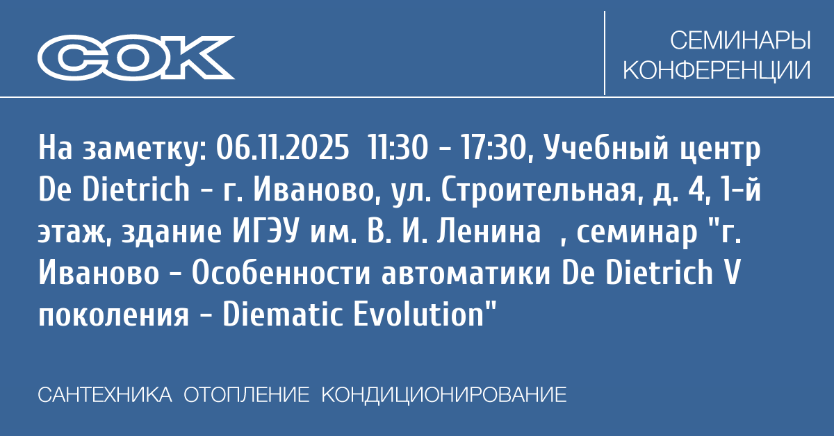 Seminar: г. Иваново - Особенности автоматики De Dietrich V поколения - Diematic Evolution