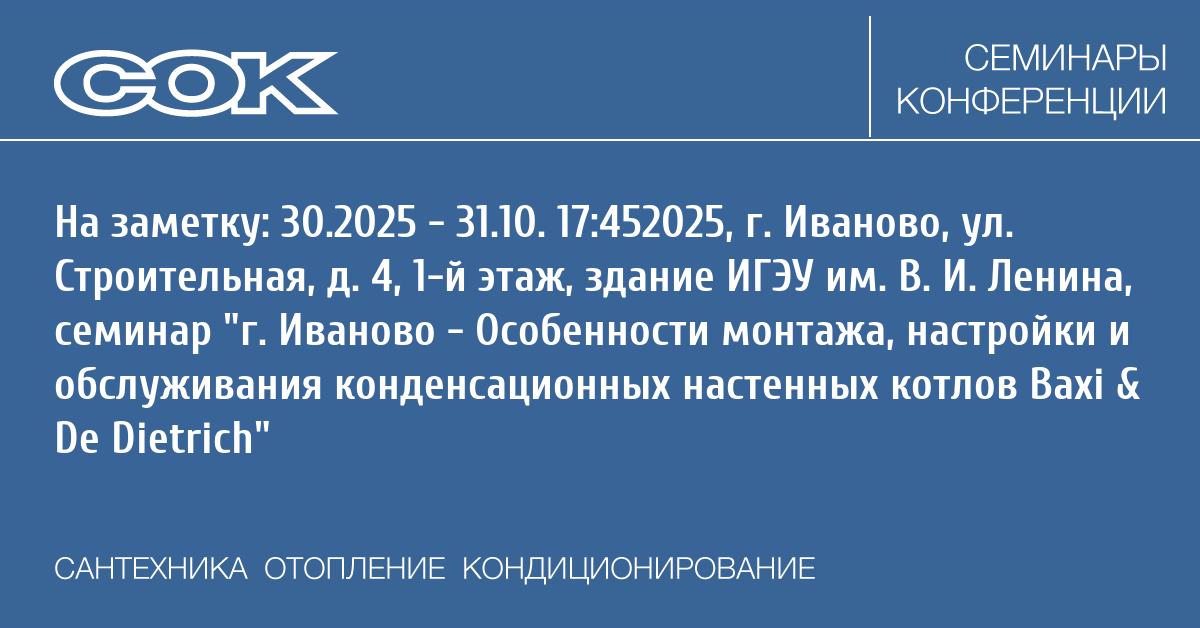 Seminar: г. Иваново - Особенности монтажа, настройки и обслуживания конденсационных настенных котлов Baxi & De Dietrich