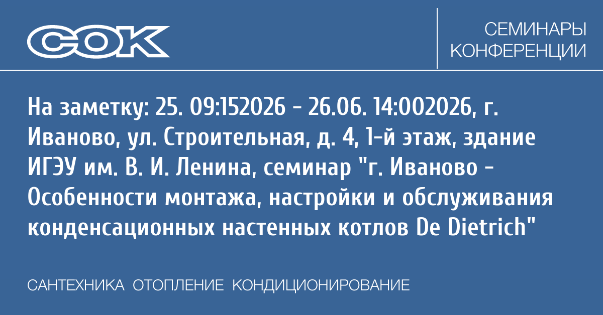 Семинар: г. Иваново - Особенности монтажа, настройки и обслуживания конденсационных настенных котлов De Dietrich
