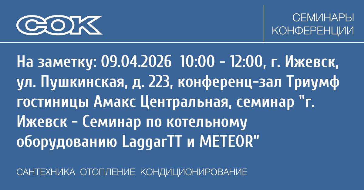 Семинар: г. Ижевск - Семинар по котельному оборудованию LaggarTT и METEOR