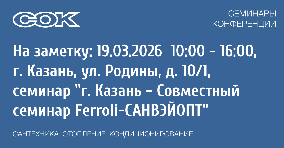 Семинар: г. Казань - Совместный семинар Ferroli-САНВЭЙОПТ