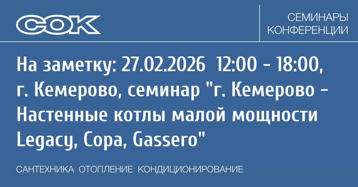 - 12.02.2026 09:00 - 17:00 Семинар Технический семинар по котлам Baxi в Дмитрове