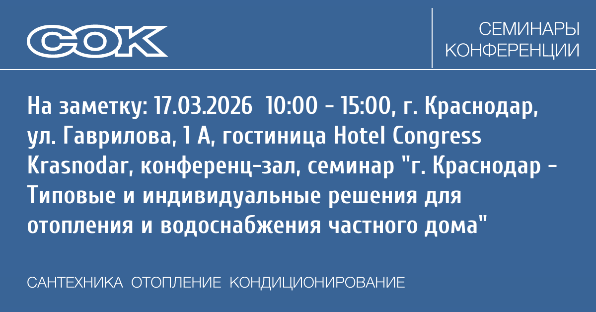 Семинар: г. Краснодар - Типовые и индивидуальные решения для отопления и водоснабжения частного дома