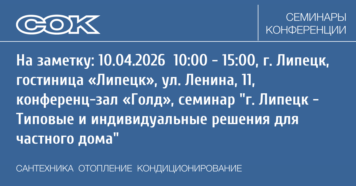 - 07.04.2026 09:30 - 14:30 Семинар г. Оренбург - Типовые и индивидуальные решения для отопления и водоснабжения частного жилого дома