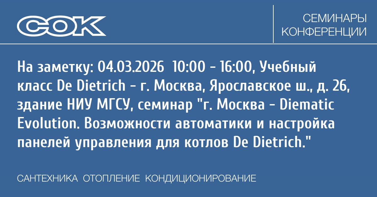 De Dietrich организует практические занятия в Учебном классе (г. Москва, Ярославское ш., д. 26, здание НИУ МГСУ) по теме: