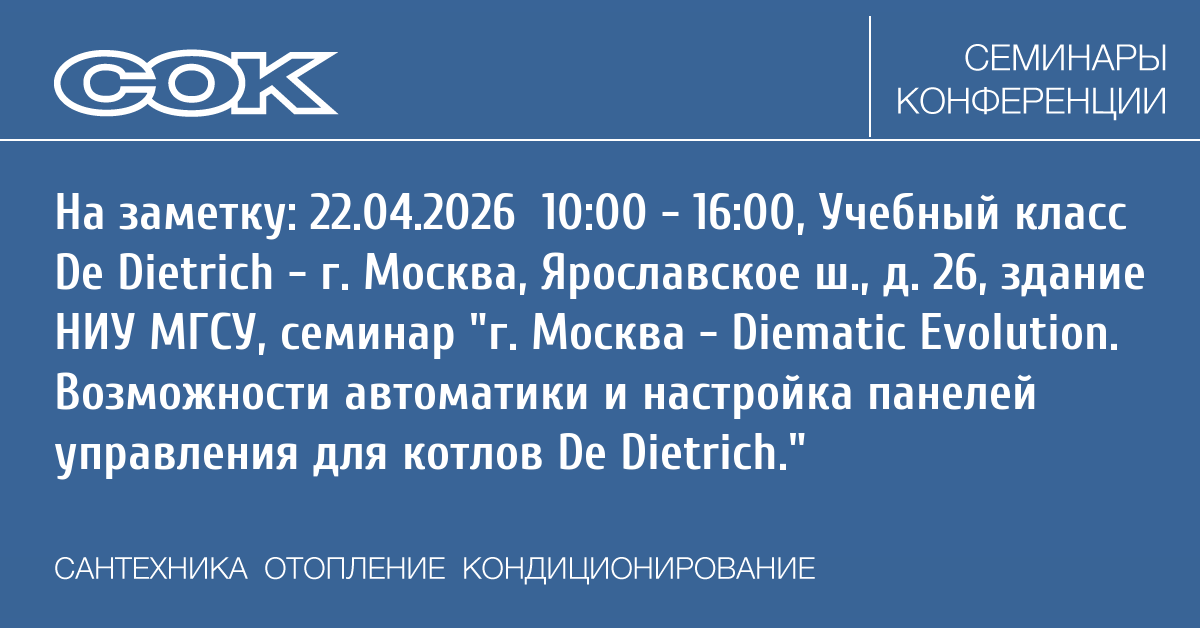 De Dietrich организует практические занятия в Учебном классе (г. Москва, Ярославское ш., д. 26, здание НИУ МГСУ) по теме:
