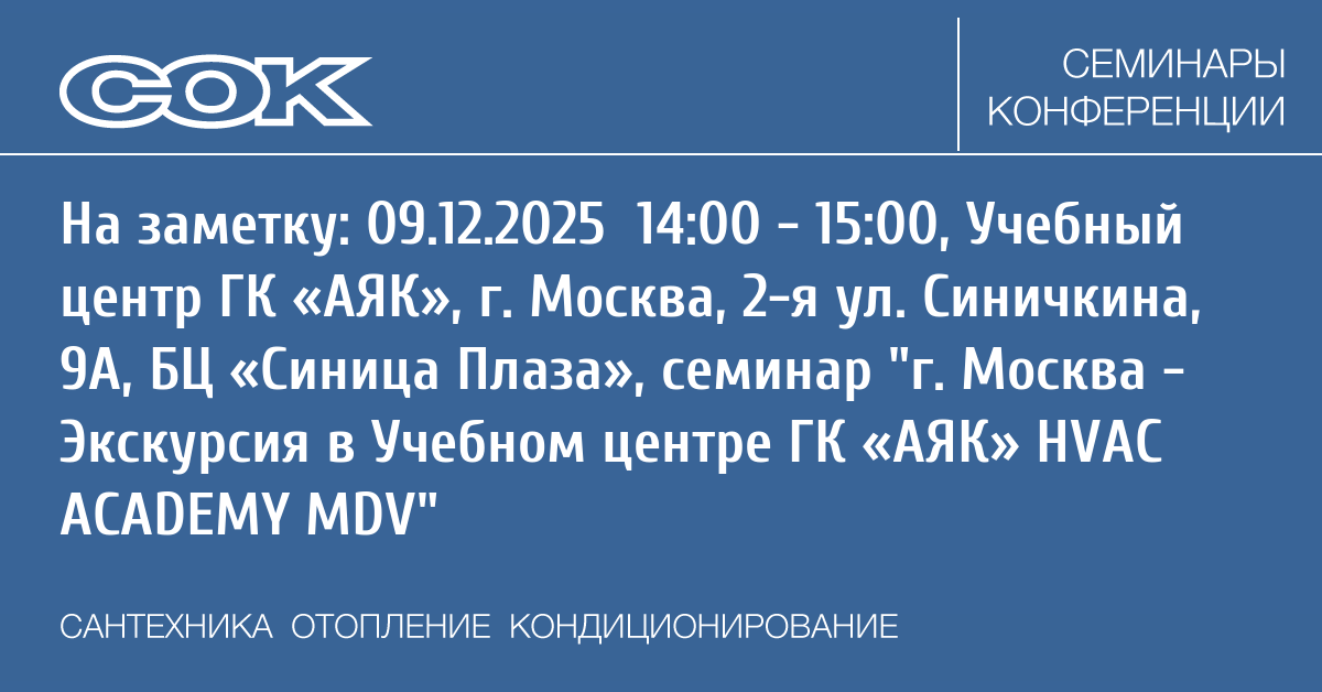 Семинар: г. Москва - Экскурсия в Учебном центре ГК «АЯК» HVAC AСADEMY MDV