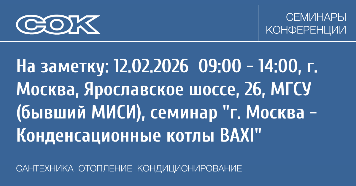 Семинар: г. Москва - Конденсационные котлы BAXI