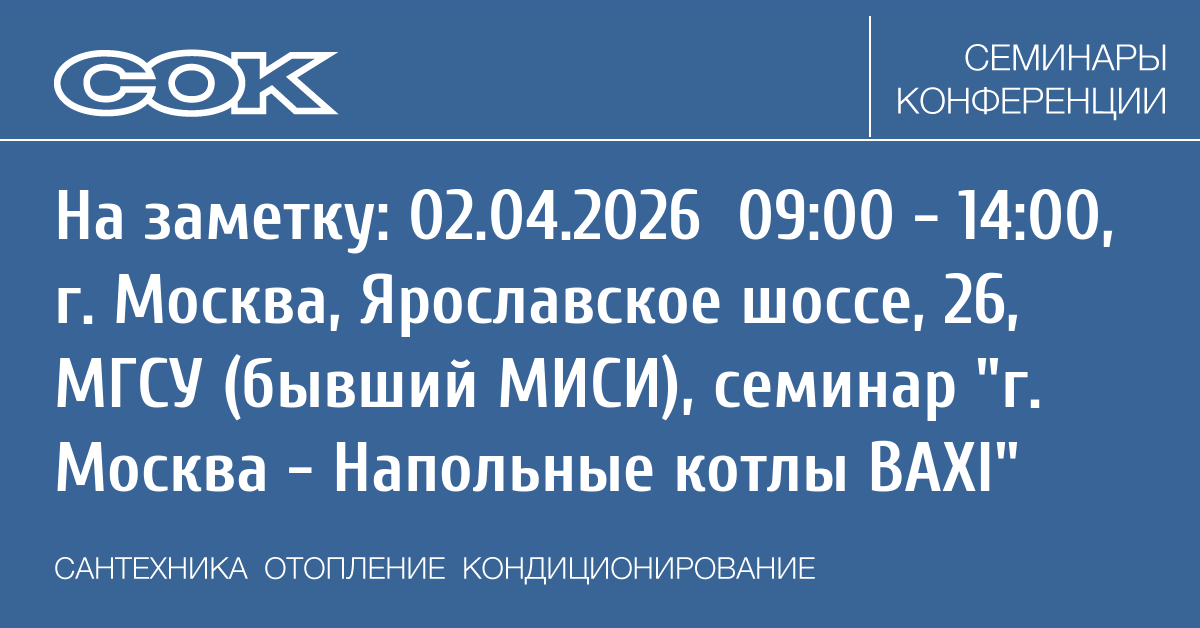 - 05.03.2026 10:00 - 15:00 Семинар г. Тамбов - Котельное оборудование BAXI и De Dietrich