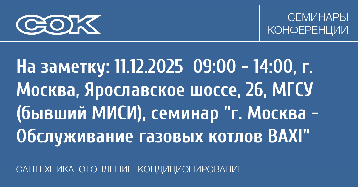 Seminar: г. Москва - Обслуживание газовых котлов BAXI