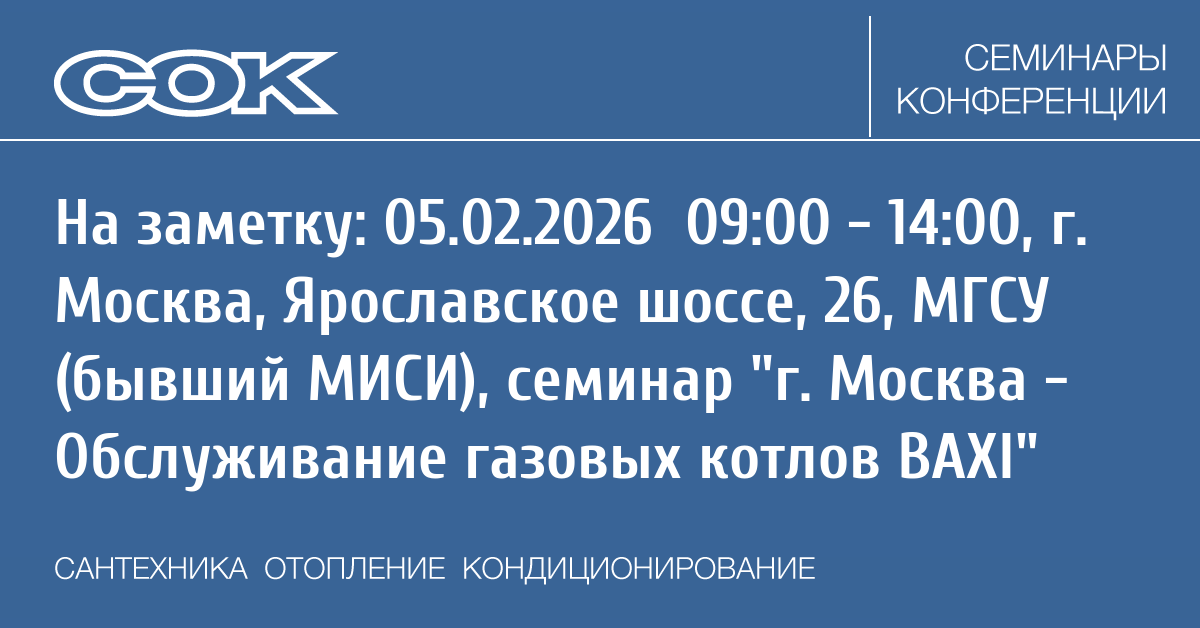 - 05.02.2026 09:00 - 14:00 Seminar г. Москва - Обслуживание газовых котлов BAXI