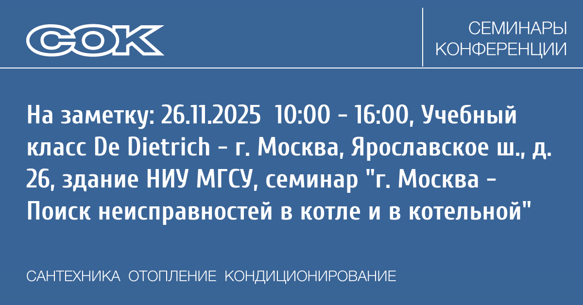 De Dietrich организует практические занятия в Учебном классе (г. Москва, Ярославское ш., д. 26, здание НИУ МГСУ) по теме: