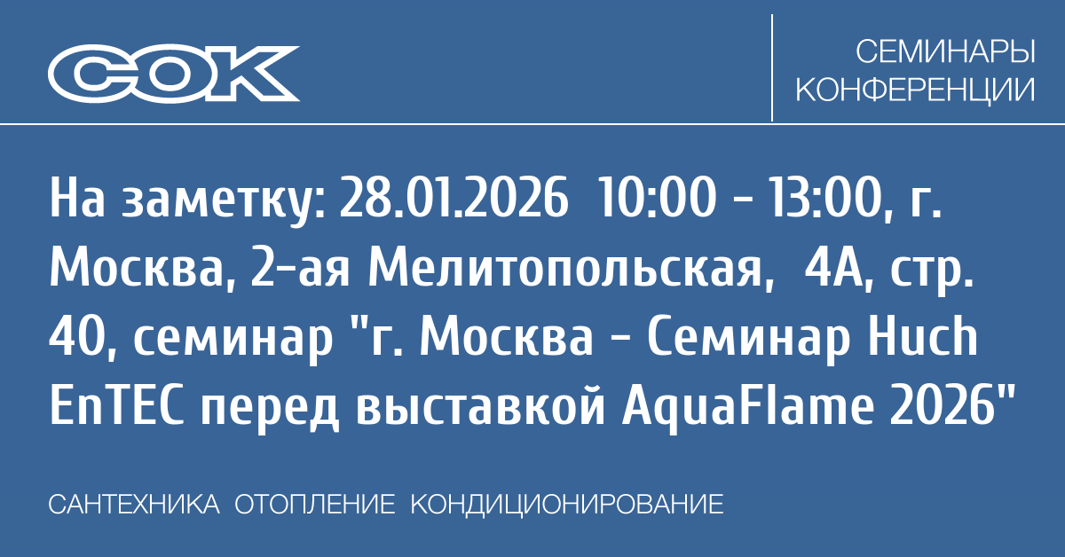 Семинар: г. Москва - Семинар Huch EnTEC перед выставкой AquaFlame 2026