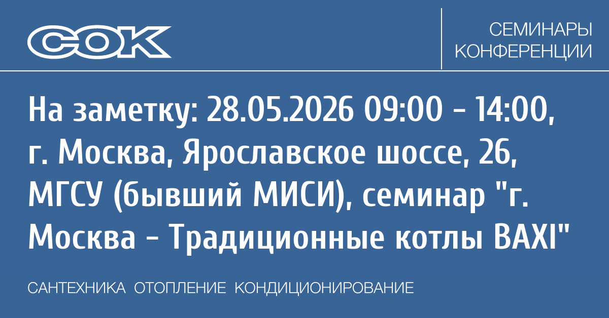 Компания «БДР Термия Рус» проводит технические семинары по продукции BAXI в МГСУ.