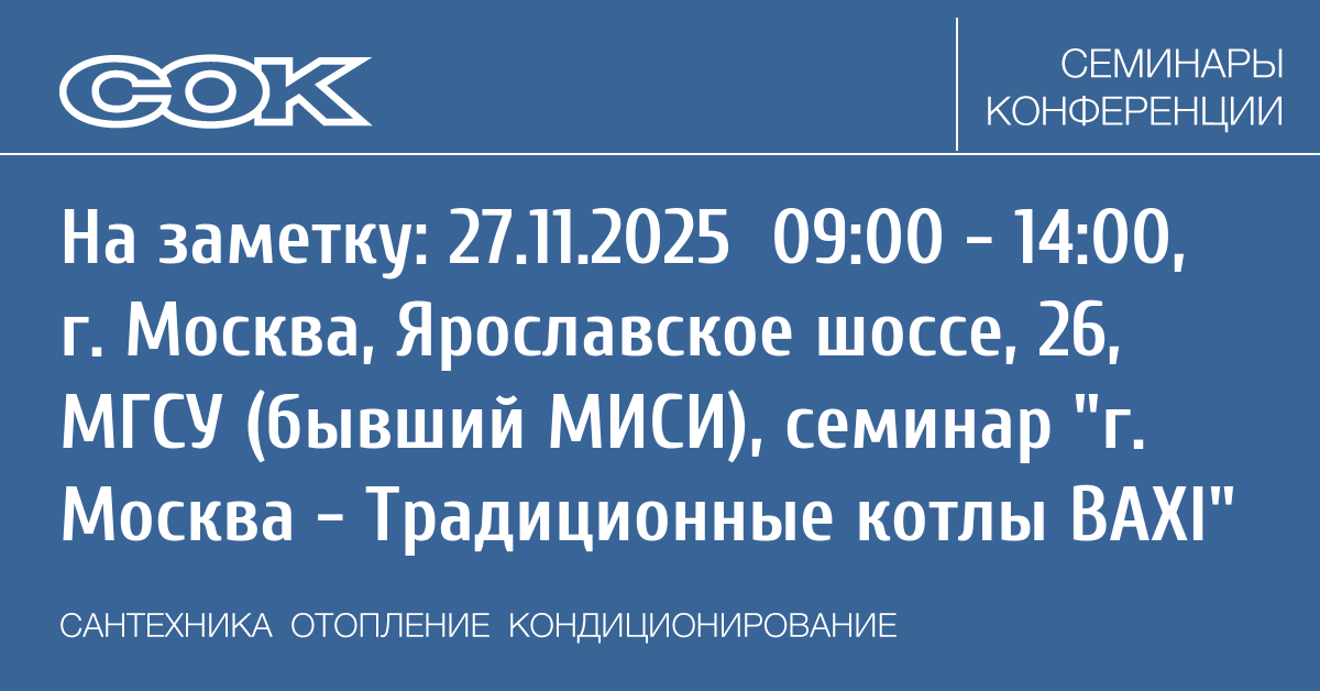 - 11.03.2026 09:30 - 18:00 Семинар Технический семинар Giacomini и BAXI в Москве